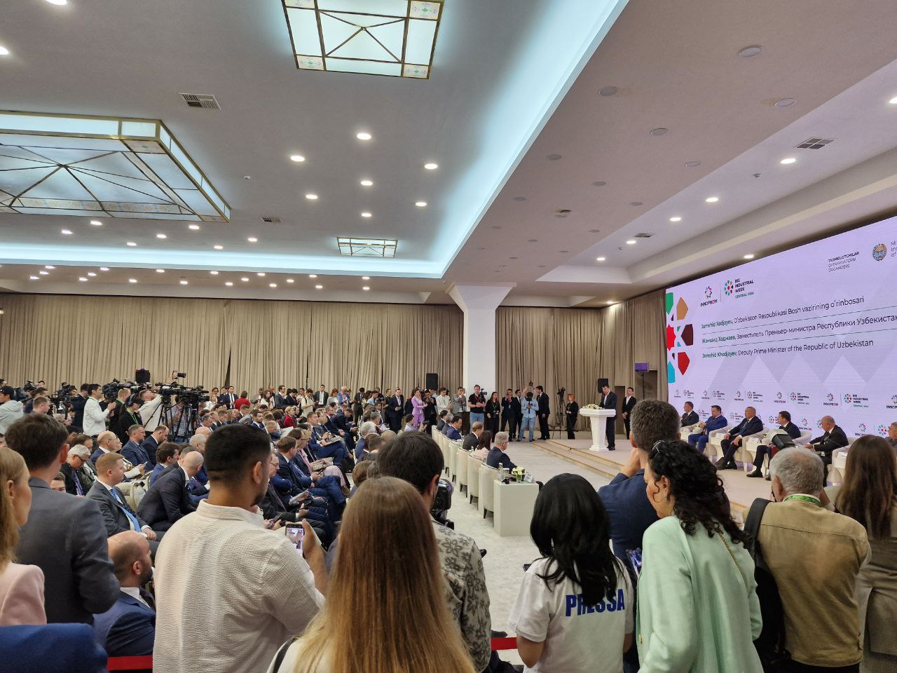 4 год Иннопром приглашает бизнесменов, производителей со всего мира. Выставка проходит в новом формате взаимодействия компаний друг с другом. Работать выставка будет три дня. Открыла мероприятие главная пленарная сессии «Промышленная кооперация в Центральной Азии: партнерство индустриальными и технологическими лидерами», где собрались представители всех стран центральной Азии и России.
